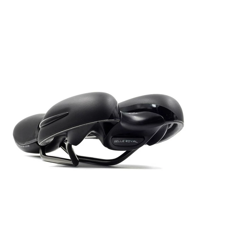 Der Selle Royal Respiro Athletic Sattel ist ideal für längere Fahrten mit sportlich gestreckter Sitzhaltung. Ein Lüftungskanal entlastet den empfindlichen Dammbereich und verbessert die Luftzirkulation überall dort, wo direkter Kontakt zwischen Fahrer und Sattel besteht. Die anatomisch designte, dreidimensionale Selle Royal Gelpolsterung reduziert die Spitzenwerte bei der Druckeinwirkung um bis zu 40%. Der Fahrkomfort ist auch auf langen Touren hoch. Das Obermaterial reflektiert das Sonnenlicht und bleibt so bis zu 25°C kühler als herkömmliche schwarze Sättel. Der Sattel ist mit der patentierten Selle Royal Vacuum Light Technologie versiegelt und somit zu 100 % wasserfest. Mithilfe des Clip Systems kannst du problemlos eine Satteltasche oder anderes Zubehör befestigen.