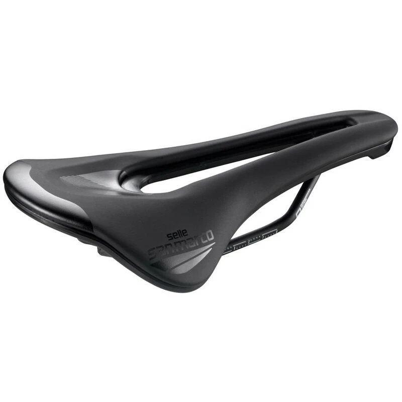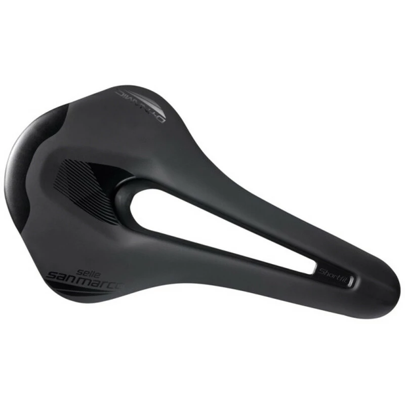 Der Sella San Marco Shortfit 2.0 Dynamic Narrow Sattel wurde entwickelt, um die Bedürfnisse der anspruchsvollsten Athleten zu befriedigen, die für bestimmte Arten des Trainings oder Tretens viel mit ihrem Oberkörper drehen und sich nahe am Lenker bewegen. Die besondere ergonomische Form dieses neuen Sattels, die sich durch eine reduzierte Länge auszeichnet, garantiert eine korrekte Unterstützung im grosszügigen hinteren Teil und eine ausgezeichnete Druckverteilung im vorderen Teil. Das grosse zentrale Loch (Open-Fit) sorgt für maximalen Komfort und Unterstützung in den verschiedenen Pedalsituationen und über die gesamte Länge des Sattels. Dadurch wird die Durchblutung gefördert und der Druck im Prostatabereich entlastet. Diese Eigenschaft ist besonders für Radfahrer mit guter Beckenrotation und für die weibliche Benutzerin wichtig. Der Sattel zeigt das seitliche Profil der identifizierbaren Sitzfläche mit einer gekrümmten Linie mit einer zentralen Vertiefung von mehr als 5 mm und wird daher als gewellt klassifiziert. Diese Besonderheit macht den Sattel auch für Personen mit flachem Rücken (Retroverso-Becken) besonders bequem, um eine korrekte Haltung mit dem Fahrrad zu ermöglichen.